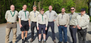 Die Taunus-Pfadfinder tragen eine khakifarbene Tracht, schwarze Hose und ein der Stufe
