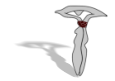 Innenfläche hellbraun, Rand dunkelbraun. Die "Tau Lilie" kann